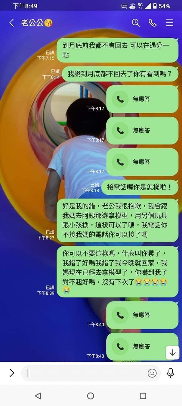 一直到16日,人妻再度發文表示,目前模型在看起來沒有受損的情況下帶回家了,但老公仍躲在朋友阿貴家,遲遲不願意回家和解,這讓她非常難過,「老公還是沒回家...只想趕快讓老公回家一切落幕」。