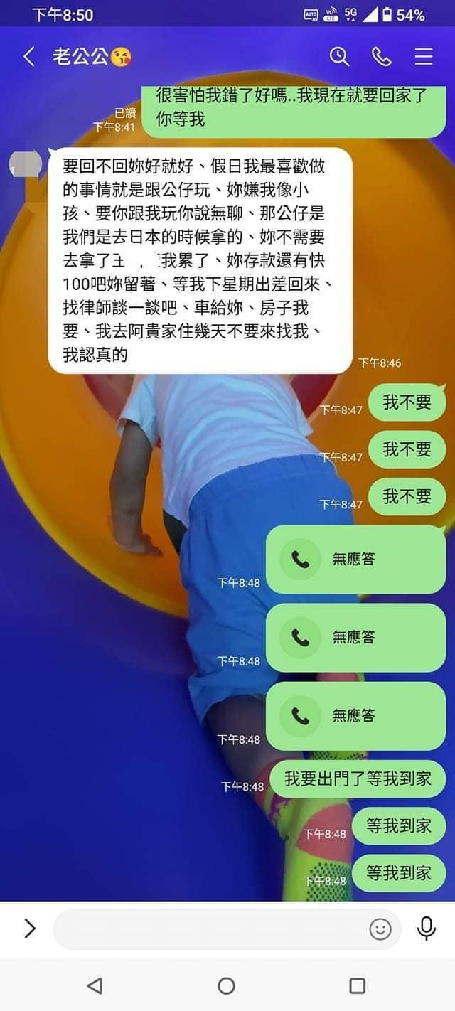 值得一提的是,在人妻曬出的對話裡,她老公也把心中所有不滿一次講明,並反控妻子的霸道等等奇怪行徑,「網路上文章我有看到,妳覺得能帶給妳什麼?只有妳被罵,我不知道妳發文意義在哪?」「鑰匙在我這,離婚的事我現在不想多談。」目前詳細後續仍無法得知,截稿前原PO仍未發出新的貼文。