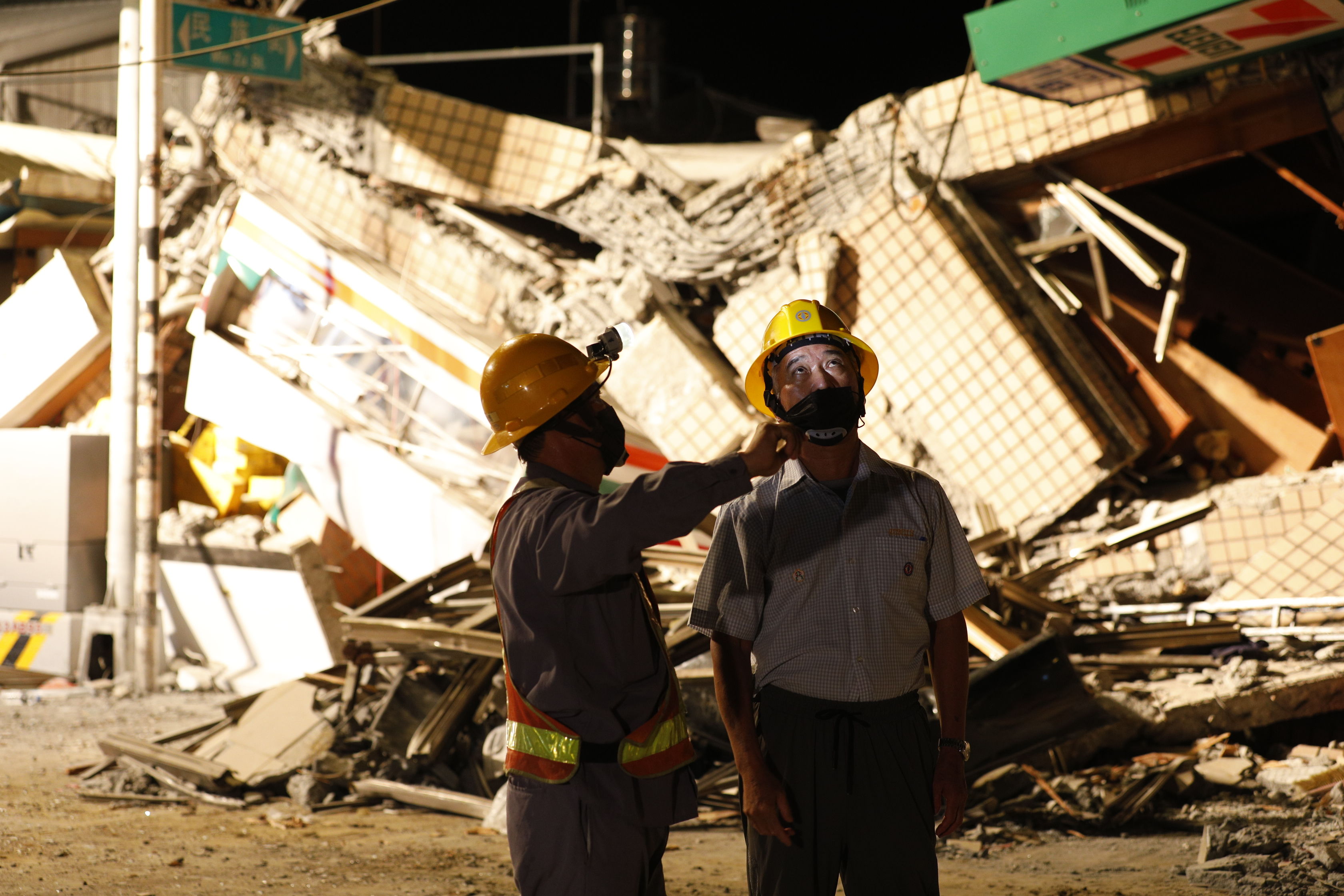 陳姓屋主經醫院包紮傷勢後,18日晚間回到倒塌現場。他說,當時他正在3樓看電視,沒想到地震發生後,房屋就突然塌掉了,他也因此被壓住動彈不得。