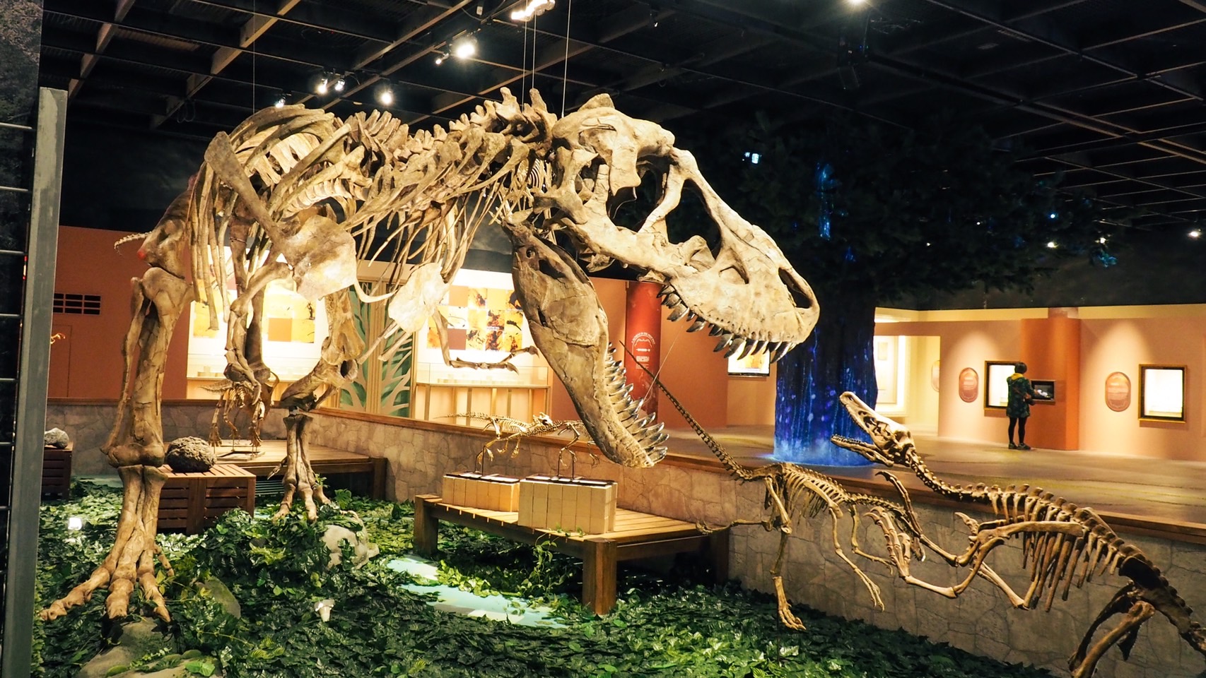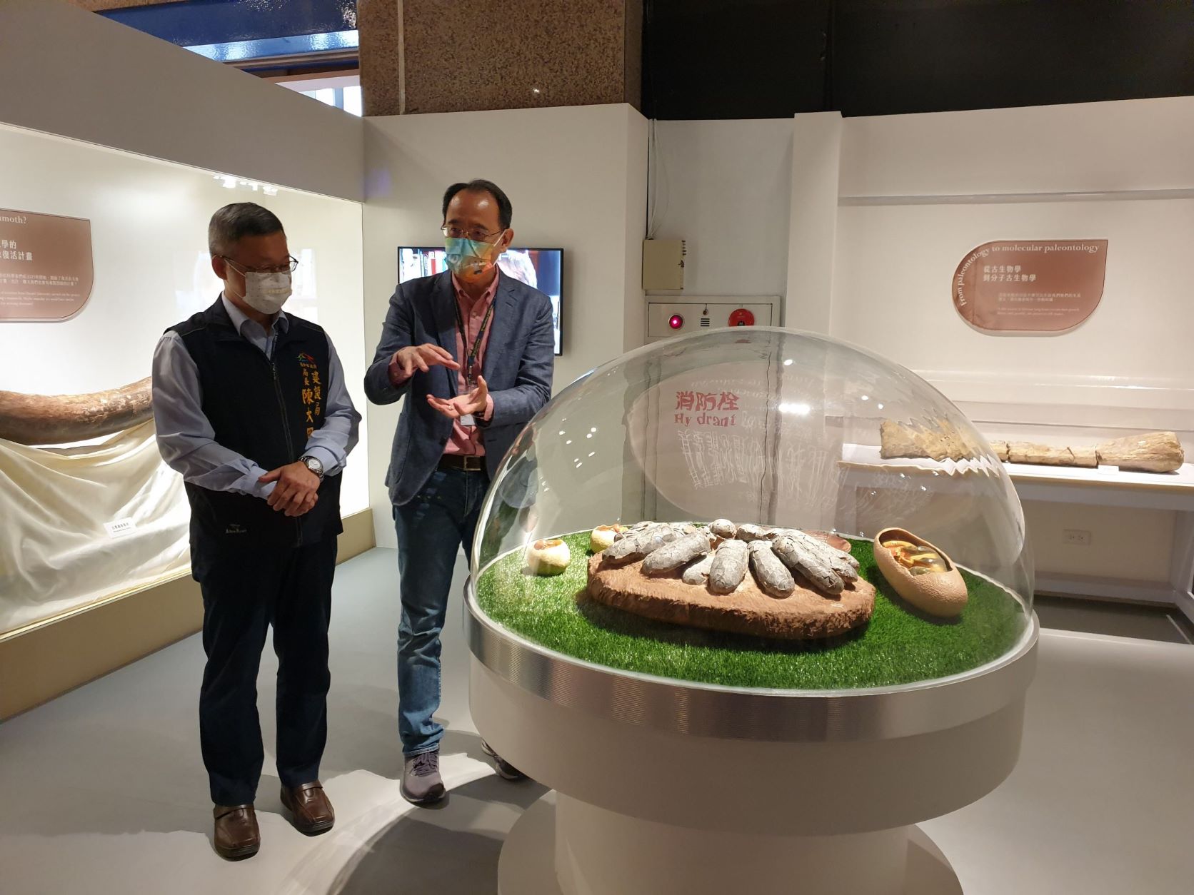 「白堊紀公園」展區矗立一隻身長約9公尺、身高約3公尺的特暴龍全身骨骼標本,還有多件大型恐龍標本群並列,現場也以科學例證回應大眾對於「我們是否能複製恐龍?」的疑問。此次更與工研院合作,透過「透明投影顯示系統」搭配辨識模組,參觀民眾可觸控旋轉、局部放大螢幕,一窺琥珀內的微小生物;操作過程中,可同步透過透明投影顯示器,清楚看到後方的琥珀化石原件,藉由科技互動體驗探索大自然的奧秘。另外,在展場外還有扭蛋機,限量發售琥珀標本盒300元,讓現場民眾更直呼太超值了,用超便宜的價格收藏珍貴的琥珀。