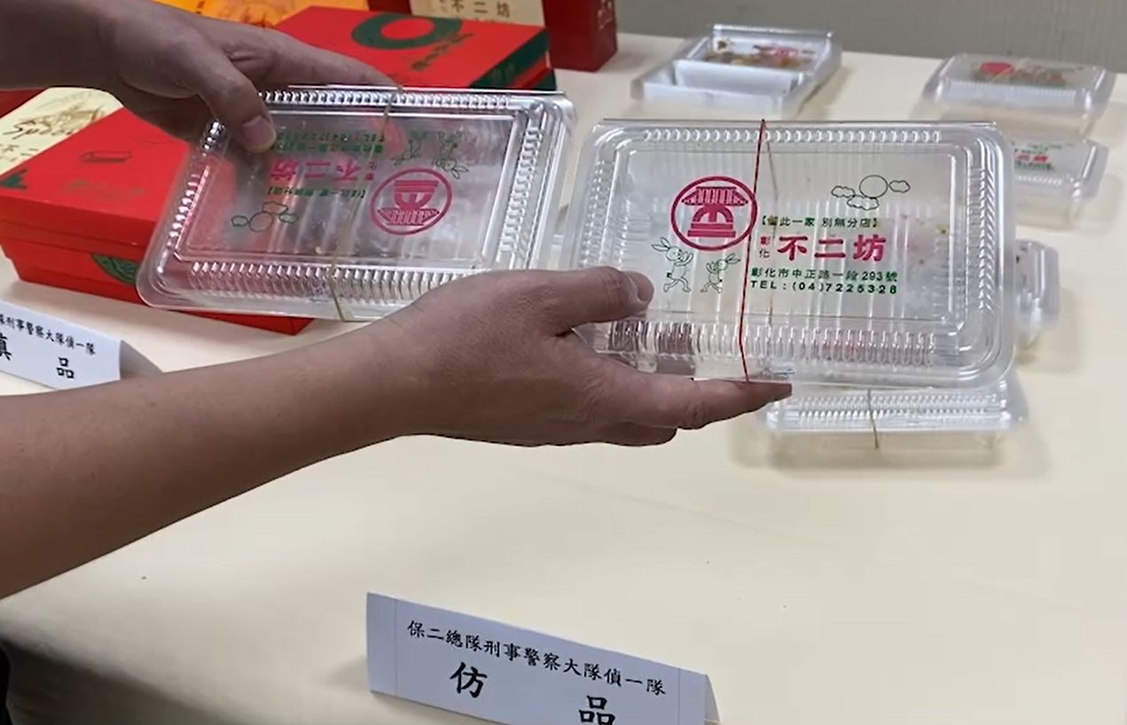 每年中秋節都大排長龍的蛋黃酥名店「不二坊」遭人仿冒!上個月初業者向刑事局報案疑似遭人假冒,警方在距離本店不到2公里中山路倉庫查扣到,仿冒商標包裝269件,過去2年不法獲利約600萬。仿冒外包裝第一眼看不出差別,但塑膠盒大小不一,還印反。全案被依詐欺、偽造文書、商標法案移送地檢偵辦。