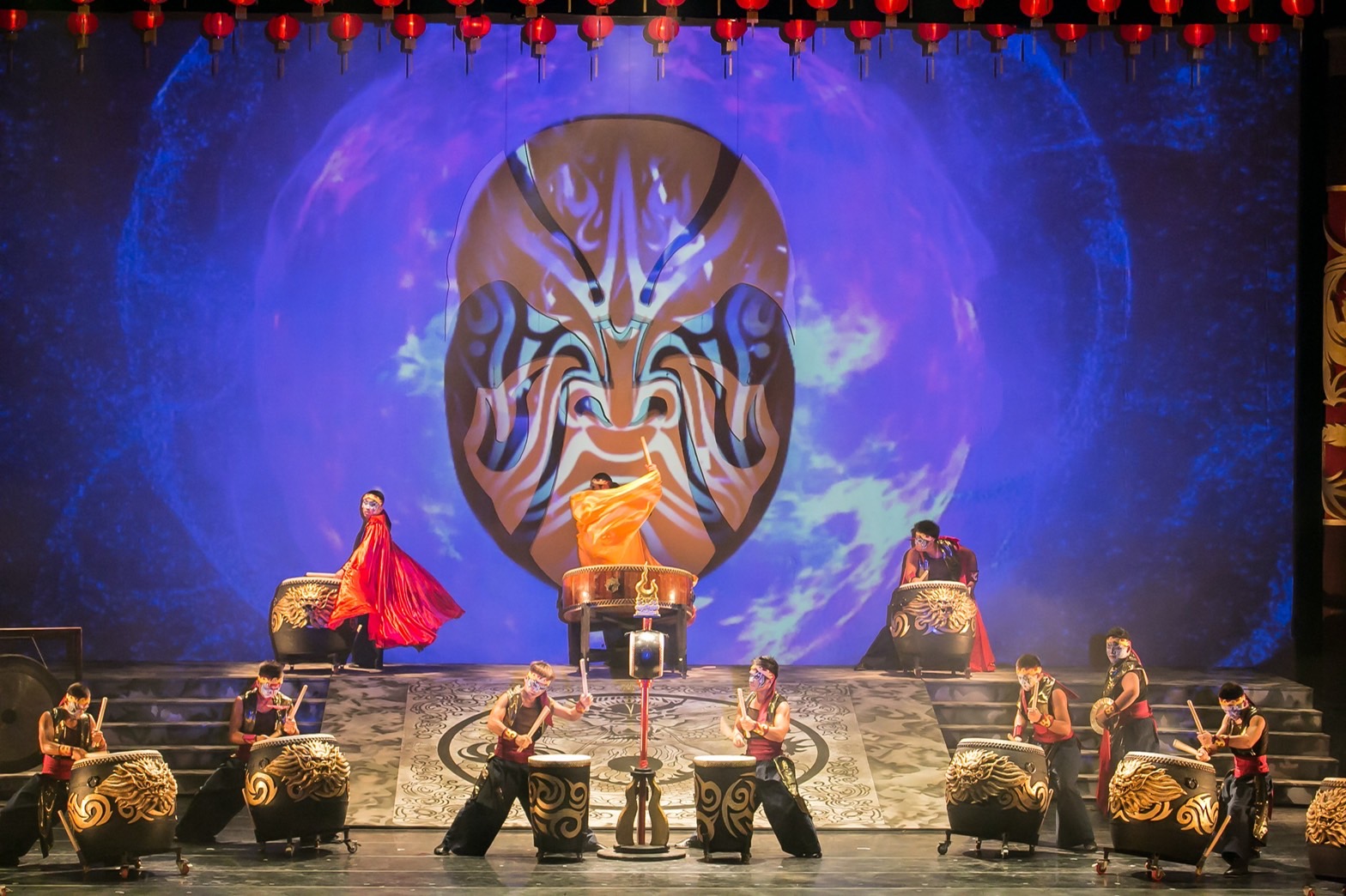 根據內政部統計,臺灣主祀王爺的宮廟數量僅次於土地公及媽祖;各個王爺數量眾多,諸多造型也大不相同,在台灣民間信仰中,王爺信仰屬於非常強勢的一大信仰文化。九天民俗技藝團則是在2014年將「王爺」的信仰文化,透過表演藝術與鼓藝創作出《迎王迎王-代天巡狩》這齣劇碼。在王爺的祭儀中最知名及代表性的就是「迎王」、「送王船」祭典,大致上簡單說明就是祈求天公派代天巡狩的王爺來,並準備「王船」,在祭典最後焚燒象徵送王爺押解瘟疫離境。而“九天團隊”便是以台灣最具規模與知名度「屏東東隆宮」的「東港燒王船」為主要取材創作;其中巨型臉譜道具是一大特色,無論是象徵迎王的王爺駕臨或是祭典中王爺環視眾生,以抽象的手法表達出來,也趁此疫情之際,象徵除瘟去煞,將疫情退散讓世界趕快恢復正常運作的祈福概念。