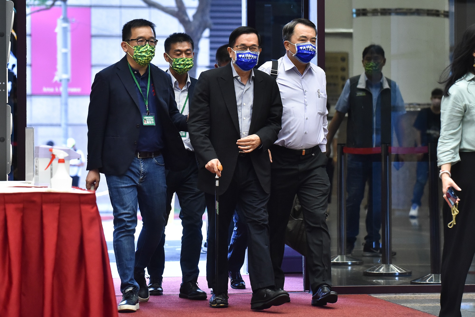 前總統陳水扁在兒子高雄市議員陳致中陪同下步入會場,這也是他在國務機要費案免訴之後首度公開露面。