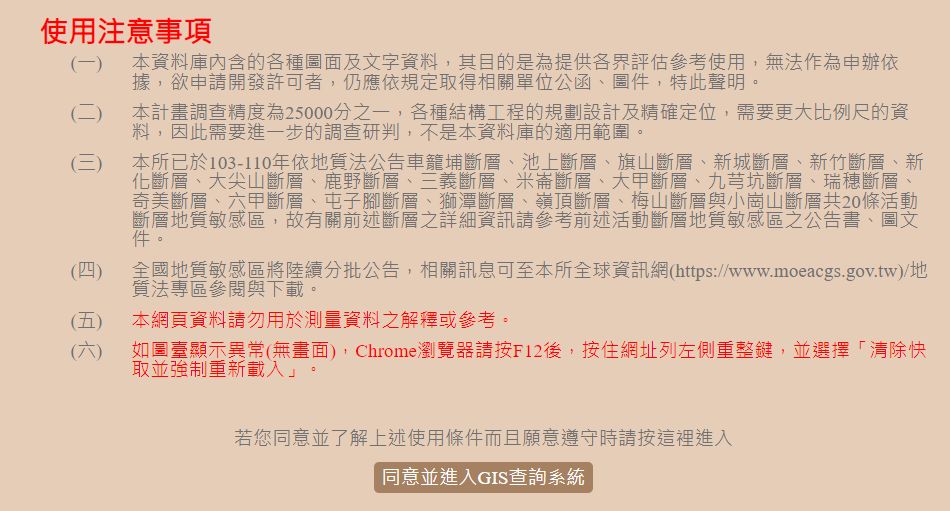 經濟部中央地質調查所有推出「台灣活動斷層分布」網站,只要點擊進入網站,再按「立即查詢」以及「同意並進入GIS查詢系統」。